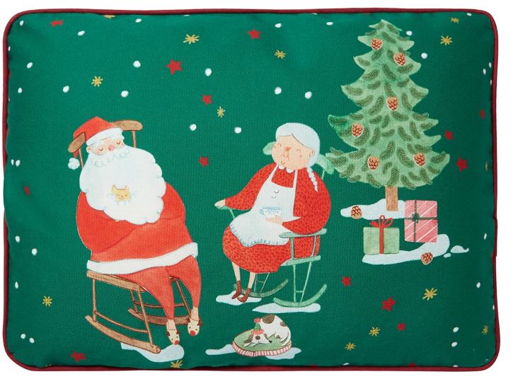 Si el anterior cojín decorativo no te gustó, no te preocupes, pues también está este cojín decorativo Elfolandia. Se trata de un cojín decorativo de color verde y elaborado en 100% algodón. Como su nombre indica, tiene estampados de Elfolandia, teniendo a Papá y Mamá Noel por un lado con el árbol y los regalos y a los elfos por el otro.