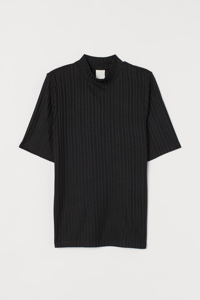 Este top de canalé es una prenda de cuello subido, entallado y con manga corta. Lo puedes encontrar en color negro y en amarillo oscuro. Su precio ahora es de 4,99 euros, y lo puedes encontrar entrando en este enlace.