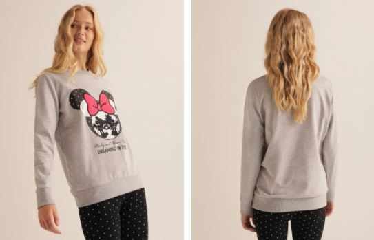 Para estar cómoda en casa, y calentita en la cama, no siempre es necesario tener un polar. En según qué zonas de España, y según el tipo de persona, a veces con una sudadera de pijama es suficiente para descansar sin pasar frío en invierno. De entre toda la colección de pijamas de El Corte Inglés, nos quedamos con esta sudadera de Easy Wear en tejido soft y manga larga con goma de ajuste suave tanto en el cuerpo como en la propia manga, y con un bonito estampado de Minnie en grande a dos colores sobre un gris perla precioso.