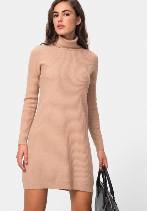El primer producto es este vestido corto de manga larga para mujer TEX. Se trata de una prenda de punto, con cuello vuelto y disponible en color camello y gris plateado. Está disponible en talla S, M, L, XL y XXL, aunque en el caso del color camello solamente quedan en talla XL.