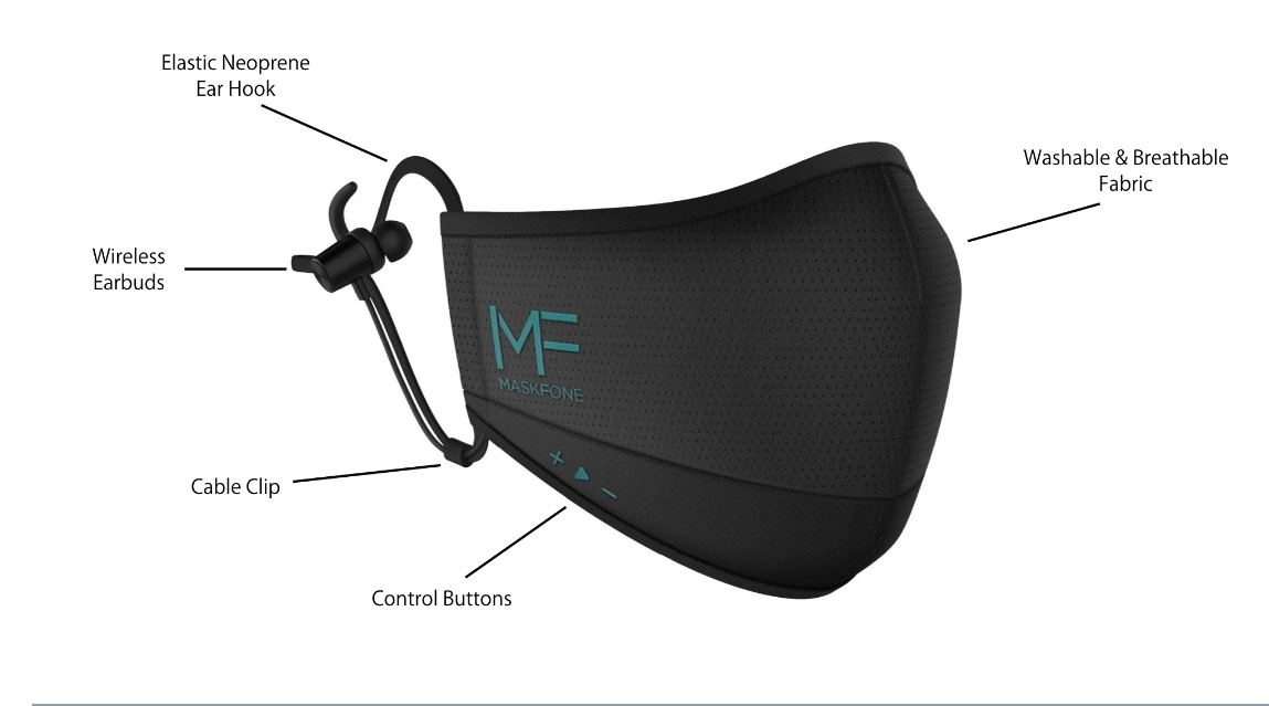 Por eso, las empresas tecnológicas han puesto sus miras en estos artículos, y no solo para fabricarlas usando tecnología avanzada, sino también para mejorar las prestaciones multimedia que se tienen cuando se usa una de ellas en el día a día. Ese es el caso del modelo MaskFone, una mascarilla que ha integrado auriculares, micrófono y control de volumen para que se pueda enlazar con tu dispositivo móvil.