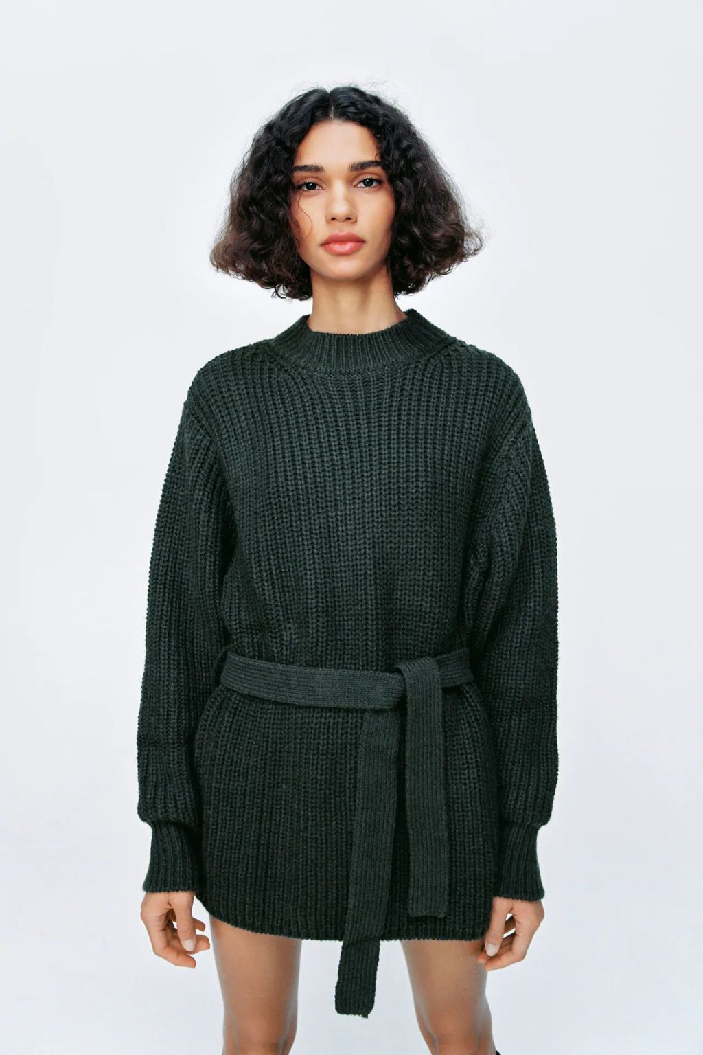 Este diseño de Zara es toda una joya que deberías tener en tu armario sí o sí. Se trata de un jersey de cuello subido con manga larga acabada en puño. Tiene además el detalle de cinturón del mismo color del tejido, el cual tienes disponible en dos colores. Puede elegir el modelo en color verde botella o en crudo. El precio de esta prenda es de 29,95 euros, y lo puedes encontrar entrando en este enlace.