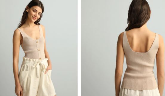 El Corte Inglés nos ofrece entre los descuentos de remate de temporada algunos tops que realmente merecen la pena pensando ya en la primavera. Como este modelo elaborado en punto, que parece un body por el corte pero que es una camiseta top de gran escote redondo abierto con espalda en tipo espejo, igualmente abierta en redondo. En la parte frontal, destaca el detalle de los tres botones de la pechera, que hacen llamar la atención precisamente sobre el busto y la figura femenina. Consíguelo en blanco o en tono beige por menos de 10 euros.