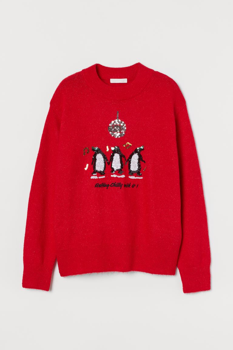 El último de los jerséis de lentejuelas de H&M es el más llamativo de todos. Además de que el color de la prenda es el rojo, el más importante para ser un ‘ugly Christmas sweater’.