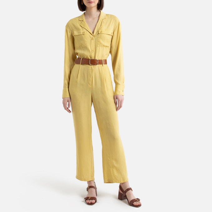 Este mono pantalón amarillo une le mejor del confort con un estilo único, para lucir donde quieras a todo color. Quedará genial con tus sandalias o zapatos favoritos.
