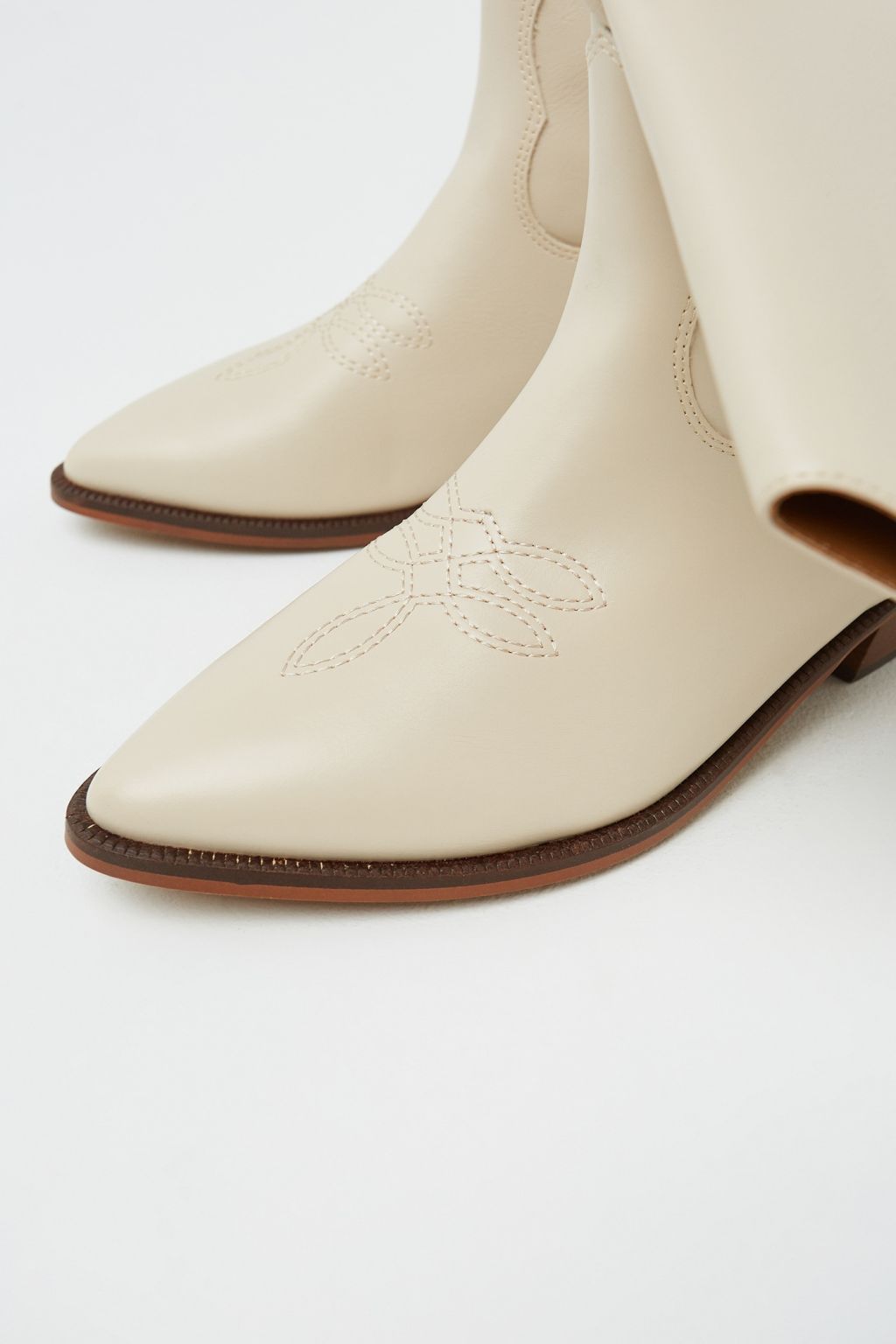 Estas botas de Sfera están disponibles en color blanco y tienen un pequeño tacón ancho. El precio de este modelo es de 39,99 euros, y las puedes encontrar entrando en este enlace.