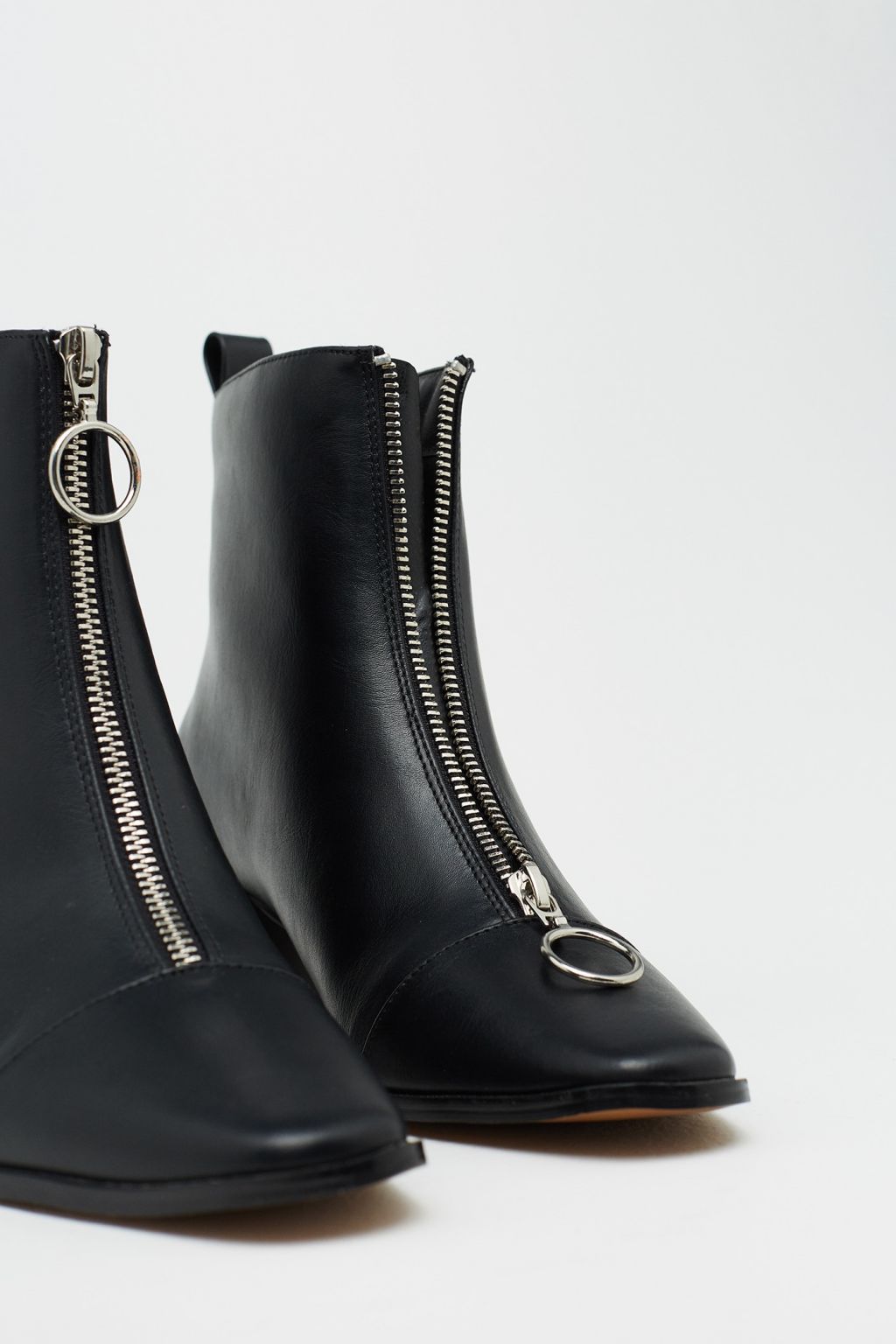Estos botines en color negro cuentan como detalle la cremallera de su parte frontal. Es un detalle simple, pero que ya puede marcar la diferencia con otros muchos modelos que son similares entre sí.