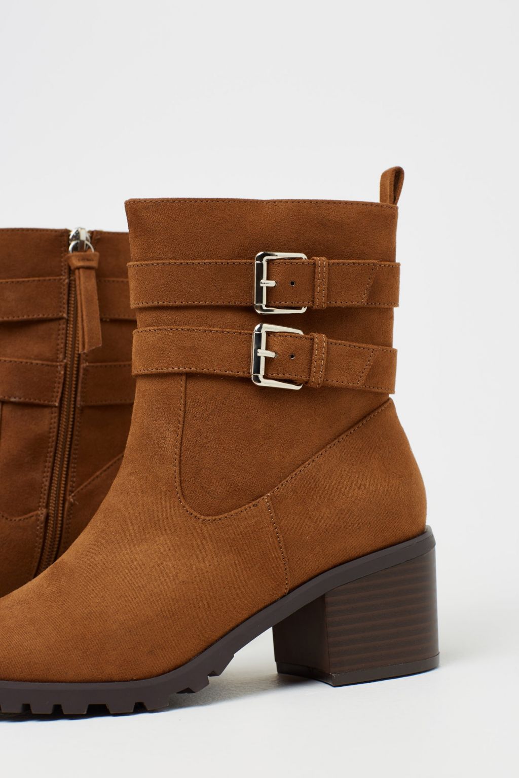 Estos botines cuentan con hebillas en sus laterales y un cierre de cremallera en su lateral interno. Eso sí, que sean cómodos no significa que no vayan a tener estilo, razón por la que además cuentan con un pequeño tacón ancho. El precio de estos es de 29,99 euros, y los puedes encontrar entrando en este enlace.