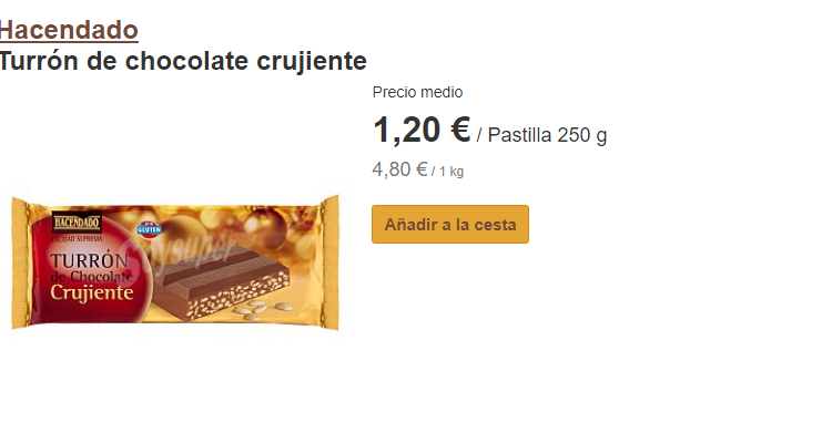 El precio del turrón de chocolate crujiente de Mercadona, suele rondar el euro por una tableta de 250 gramos. Sin duda, uno de los más baratos, y si tienes niños, es imprescindible. Si no te gusta este tipo de turrón, no te preocupes, pues vamos a ver más tipos de turrones de chocolate a lo largo de este artículo.