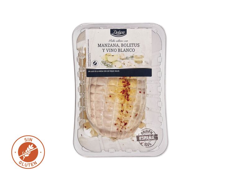 Eso sí, si prefieres no manchar para nada la cocina, o al menos un día tener un plato ya resuelto, no te lo pienses más. Lidl apuesta por varios productos entre sus novedades para Navidad que son muy interesantes. Siguiendo la línea de construir un menú menos habitual para estas celebraciones, apostamos por el pollo relleno. Más en la ola de las tradiciones estadounidenses, una buen ave con un relleno contundente se convierte en el protagonista de la mesa. En este caso, con un pollo deshuesado relleno de manzana, boletus y con el toque del vino blanco. Una delicia con la que tener resuelta una comida.