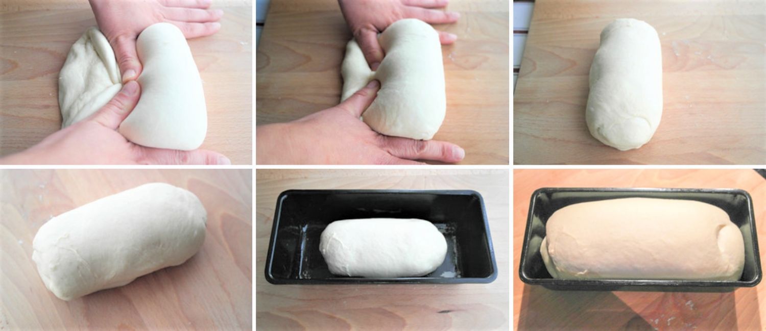 Ahora debes enrollarla de forma que tenses el cierre en cada una de las vueltas que vayas dando. El objetivo es tengas ligeramente la masa mientras la gira, sellándola en cada uno de estos. Ahora pon este cilindro en el molde que debes haber engrasado con aceite. Deja que fermente durante dos horas con un paño tapando y en un lugar que sea cálido. Pasado este tiempo, la masa habrá doblado por fin su volumen.