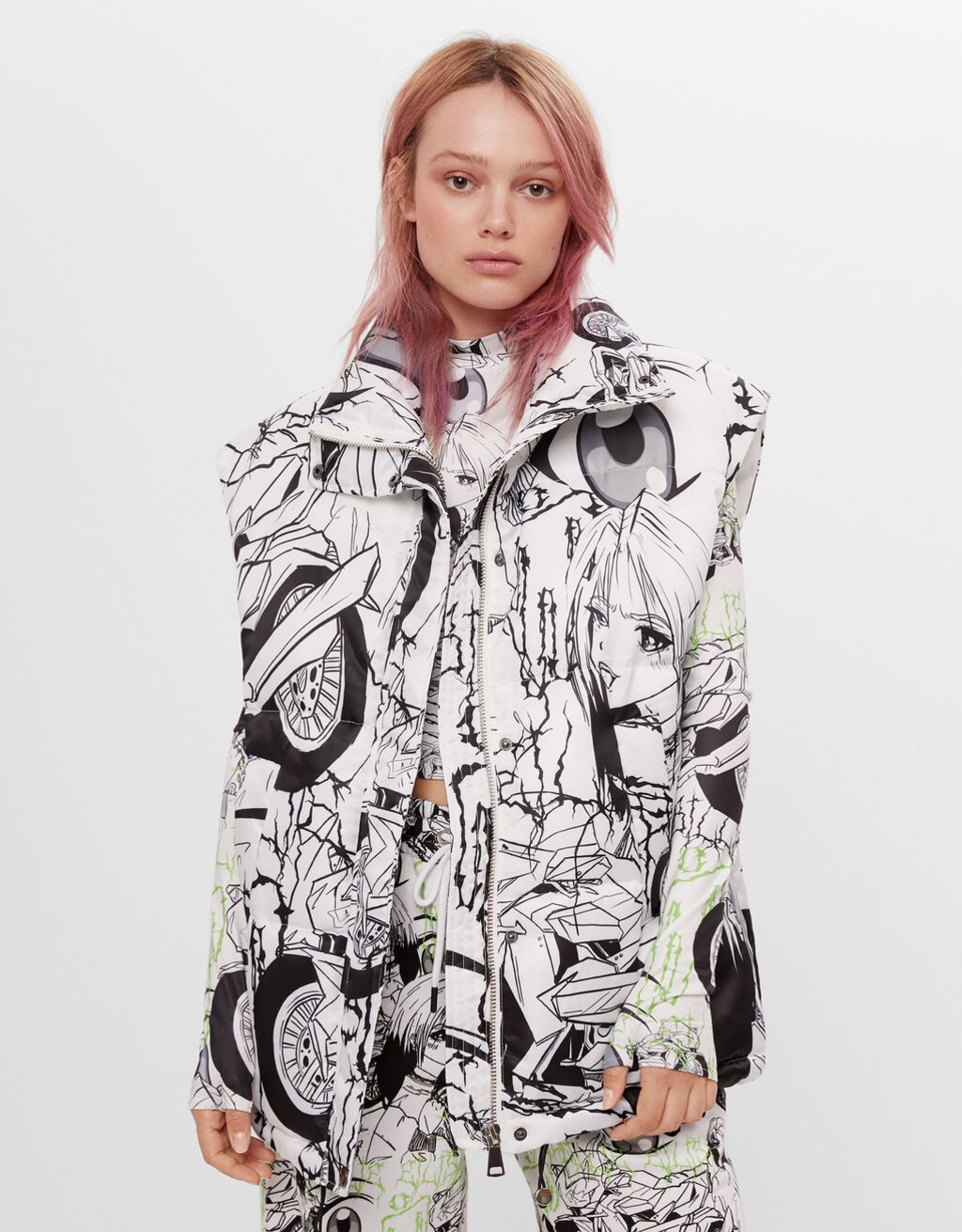 Como te hemos dicho, muchas de las prendas han sido creadas a juego, como esta chaqueta puffy. Aunque se trata de una pieza sin mangas, lo cierto es que frío no vas a pasar. Además, siempre y cuando lleves debajo una camiseta de manga larga, no tendrás ningún problema.