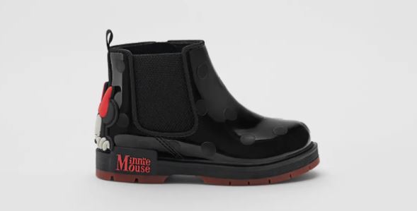 Vamos a ver otra prenda infantil de Zara, presentando en esta ocasión esta bota de Minnie Mouse. Se trata de una prenda con acabado en charol, con elástico en el lateral y un detalle de Minnie Mouse en la parte de atrás y en los laterales. Eso sí, en esta ocasión es para niños más pequeños, ya que tienen desde la talla 18 hasta la 27.