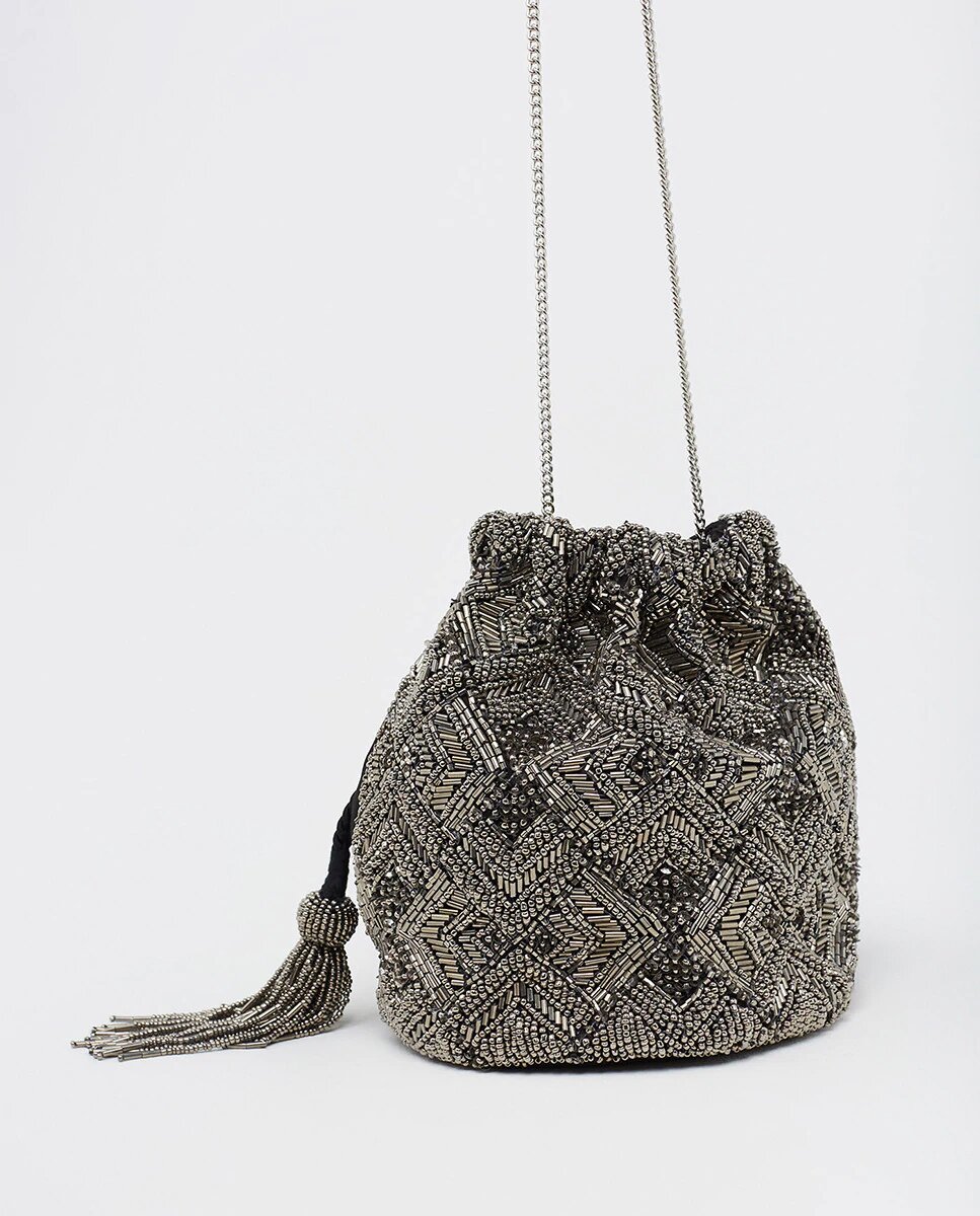 Este bolso saco de Sfera es un diseño rescatado, y es que el año pasad esta clase de diseños eran sensación. Todas querían un modelo como este, y ahora vuelve al escaparate, solo con un diseño muy particular.