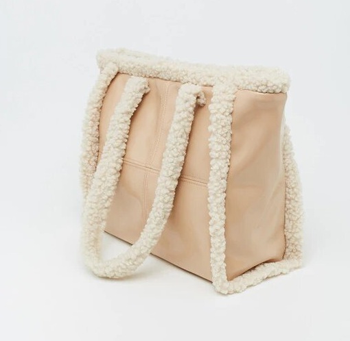 Se trata de un bolso shopper de borreguillo que sin duda, llama la atención. El color empleado es el beige, que sin duda se ve de maravilla. El precio de este es de 22,99 euros, y lo puedes encontrar entrando en este enlace.
