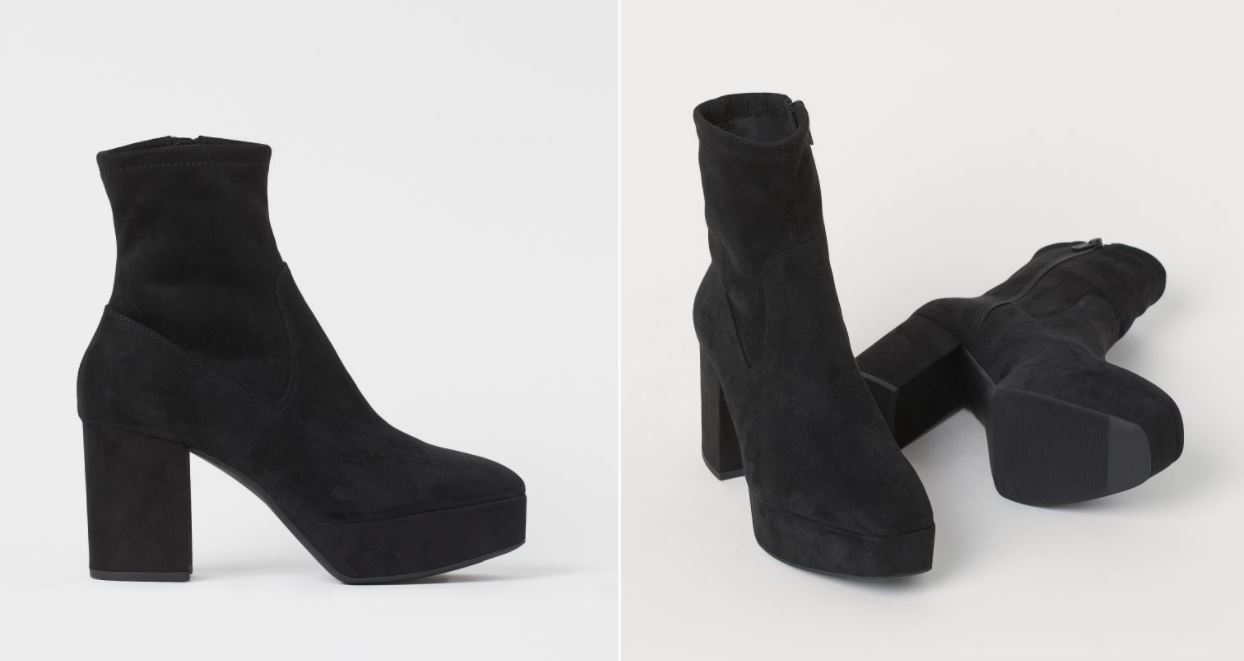 Estos botines de plataforma HM presentan una caña suave flexible confeccionada en poliéster que se ajusta a las mil maravillas a la parte del tobillo. Para facilitar su puesta, cuenta con cremallera interior. Estos botines son uno de los más altos de la colección, 8,5 cm, que se suavizan gracias a la plataforma delantera. Son cómodos, elegantes y además, muy baratos (por menos de 30 euros). ¿A qué esperas?