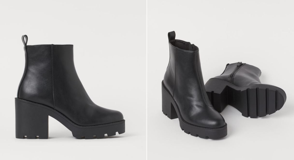 Ya en la recta final de esta selección especial de botas y botines de H&M que están a precios de risa, uno de los modelos que está arrasando en venta en la firma; estas botas de suela gruesa, confeccionadas en piel sintética sin adornos, pero con costuras laterales. Presenta un tacón alto (8,5 cm) y una plataforma delantera menor que en modelos anteriores de esta misma altura. Cuenta con una cremallera lateral visible para ajustar mejor la caña baja a la pierna. El interior está bien forrado en poliéster.