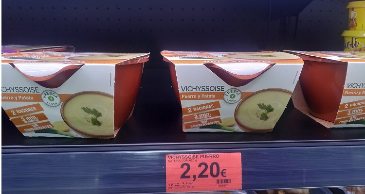 Finalmente, el último producto de la lista es la vichyssoise, otra vieja conocida de este supermercado. Este producto es una sopa de puerros y patatas, que generalmente se toma fría. Si quieres ofrecer algo distinto a tus comensales, puede ser una buena idea comprar este producto.