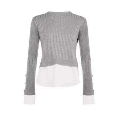 Sin salir de la tienda de ropa low cost por excelencia nos encontramos con este original jersey de efecto 2 en 1 o efecto superpuesto, porque incluye bajo y puños de camisa para que dé la sensación de que llevas dos prendas en lugar de solo una. Es un jersey de canalé de corte ajustado, con botones de fantasía en la manga. Muy a la moda, porque ya sabes que este tipo de botones vistosos se llevan mucho este año.