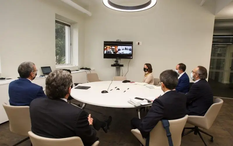 El ministro de Inclusión, Seguridad Social y Migraciones, José Luis Escrivá, junto al secretario de Estado de la Seguridad Social, Israel Arroyo, y el secretario general para el Reto Demográfico, Francesc Boya, se ha reunido este lunes vía telemática con el alcalde de Soria, Carlos Martínez, para solicitar la cesión de dicha parcela en suelo municipal de cara a la instalación del Centro de Proceso de Datos (CPD) de la Seguridad Social en esta ciudad.