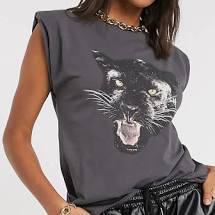 5Camiseta con hombreras y motivo de pantera de Asos Design
