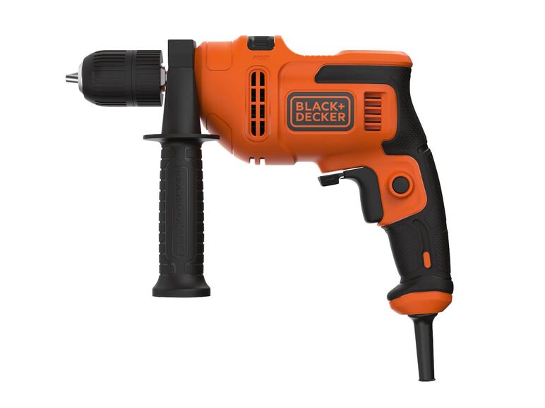 Comenzamos fuerte con este taladro percutor Black & Decker de venta en el supermercado alemán. Es un taladro reversible y con velocidad variable a gusto del usuario. Puede alcanzar grandes potencias gracias a su motor de 500 vatios.
