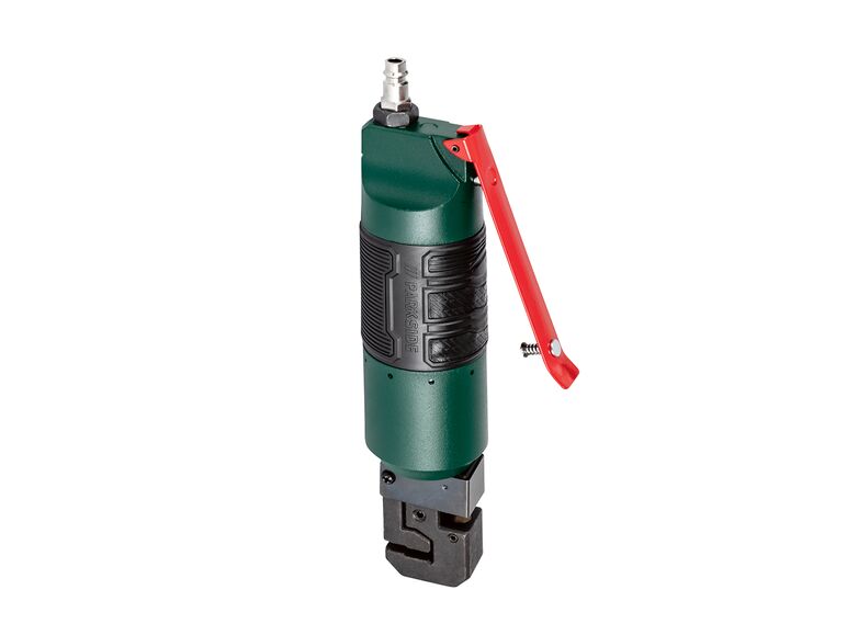 Ahora tenemos esta dobladora perforado neumática de venta en el supermercado alemán. Es un producto de diseño compacto, pesando 1,25 kilos y teniendo unas medidas de 27 x 8,9 x 5,6 cm. Este aparato trabaja a 6,3 bares máximos de potencia con 12 mm de pliegue, algo que le permite perforar y doblar chapas de hasta 1,5 mm de grosor.