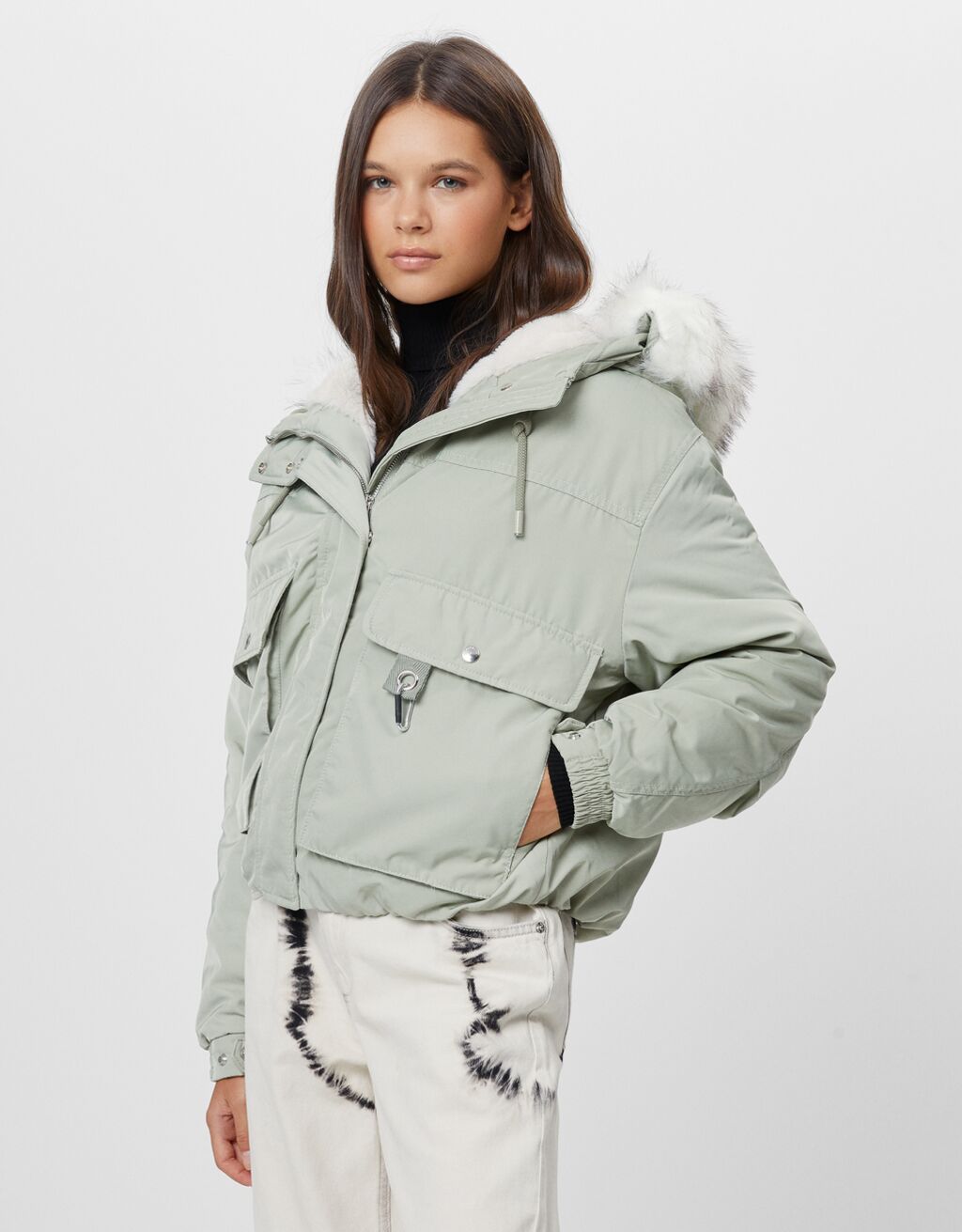 Las parkas son otro básico del otoño y el invierno, una de las prendas de abrigo por excelencia en casi todos los armarios. ¿Aún no tienes una parka? Pues tal vez deberías considerar la idea porque son cómodas, calentitas y versátiles. Como casi todos los clásicos, se adaptan a multitud de estilismos, solo hay que saber jugar un poco con los elementos para incluirla en diferentes situaciones. En Bershka hemos encontrado esta de diseño corto, con dos bolsillos delanteros con solapa decorativa, cierre con cremallera y una capucha con ribete de pelo. Están disponibles en tres colores básicos: kaki, blanco roto y negro, a un precio de 29,99 €.