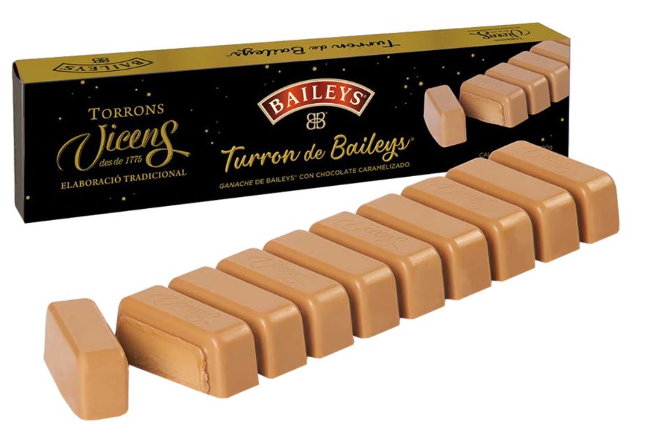 Todos conocemos el famoso licor Baileys, el cual es famoso por su sabor. La famosa empresa Vicens ha hecho un turrón con esta famosa bebida, el cual se vende en El Corte Inglés. El turrón tiene auténtico Baileys con chocolate caramelizado.