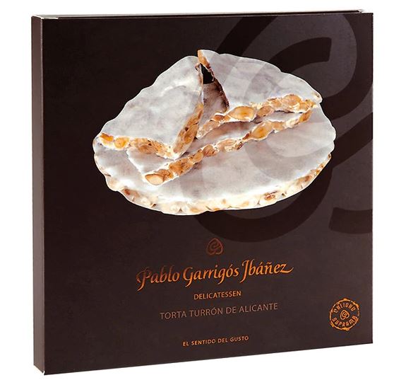 Además del turrón de Jijona, también tenemos el turrón de Alicante de El Corte Inglés. En concreto, lo tenemos en forma de torta, presentando un turrón hecho por Pablo Garrigós Ibáñez en Jijona. Está hecho con un 68% almendra marcona, 16% miel de romero, azúcar, jarabe de glucosa y clara de huevo.