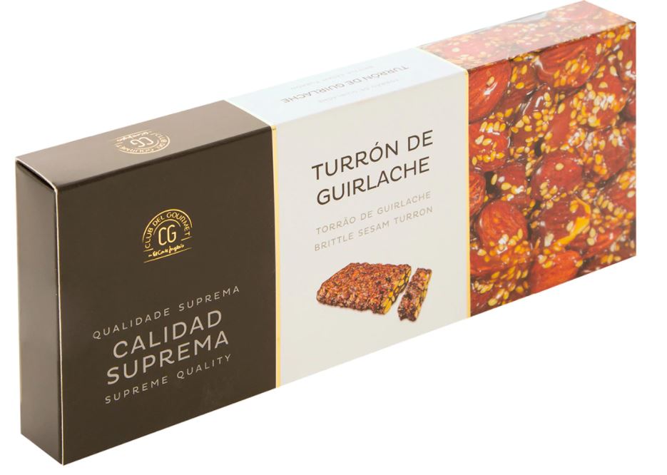 El turrón de guirlache no es tan común como el de chocolate, pero es igual o más delicioso. En este caso, tenemos uno hecho con almendra marcona tostada, azúcar, miel de naranjo, clara de huevo y una oblea hecha con fécula de patata y aceite de girasol.