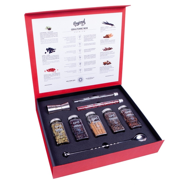 En este otro set tienes varios botánicos para aportar un toque diferente. Eso sí, no mezcles más de dos en cada copa. Tienes anís estrellado, canela cassia, pimienta de Jamaica, vainilla en vainas y bayas de enebro. Te dejamos con el enlace de este fantástico regalo que El Corte Inglés pone a tu disposición.