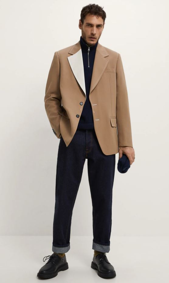 El siguiente producto de Zara es esta Blazer contraste conjunto limited edition de color tostado. Tiene cuello con solapas de pico combinadas a contraste, manga larga acabada en puño de botones y bolsillos de solapa en cadera. Asimismo, destaca el detalle de bolsillo interior y el bajo con doble abertura en espalda, además de su cierre frontal de botonadura.