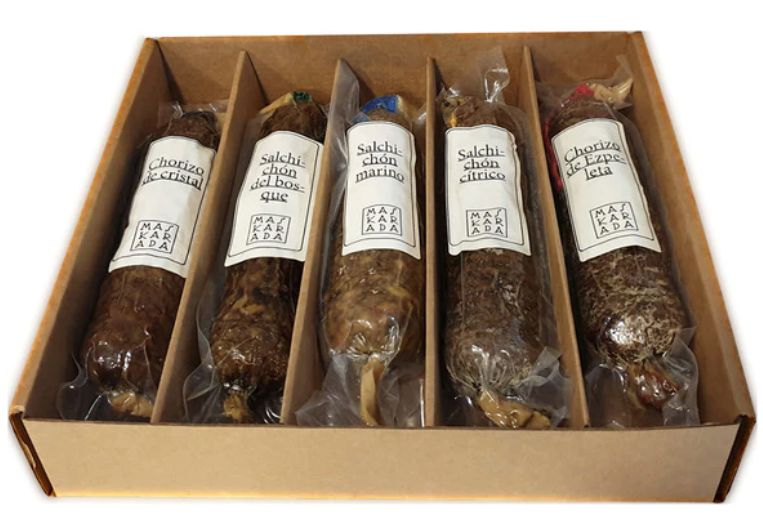Si quieres combinar el jamón que has elegido con otros embutidos ibéricos de calidad, nada mejor que hacerlo con este estuche de cinco unidades de salchichón y chorizo de la marca Maskarada.