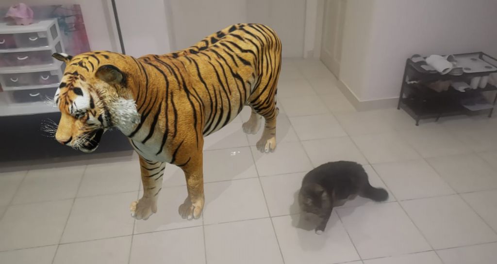Tan solo tendrás que darle a este botón, y de forma automática aparecerá la imagen en 3D de un tigre en tu pantalla. ¿Quieres añadirlo al salón de tu casa? Pues lo único que faltará será darle al botón «Ver en tu espacio», para que por arte de magia aparezca el animal en cuestión.