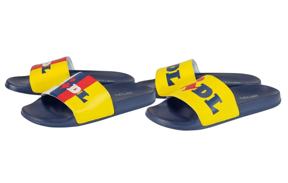 Además de las zapatillas de Lidl, en verano causaron auténtico furor las chanclas de baño, también customizadas con los colores corporativos. Ha funcionado porque al precio ajustado al que se venden (5,99 euros) se une un diseño muy clásico, que a todo el mundo le resulta cómodo y por lo tanto ponible.