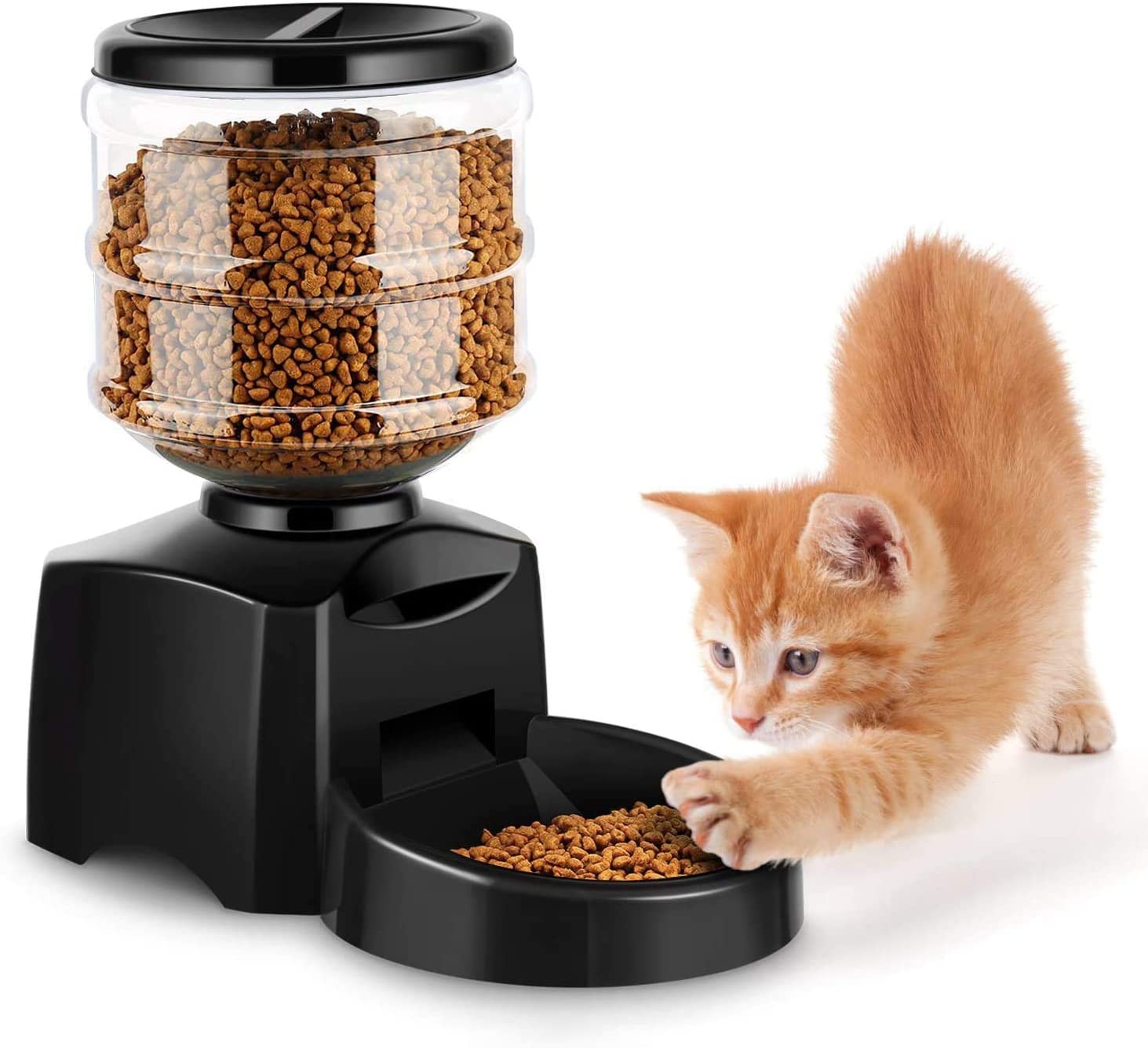 Con un panel de control LCD para programar el tiempo y cantidad de suministro. Con función memoria para que se pueda programar todos los días automáticamente. Incluso incluye una memoria para grabar tu voz (10 segundos) y que salte el mensaje para recordar a tu mascota que es hora de comer.