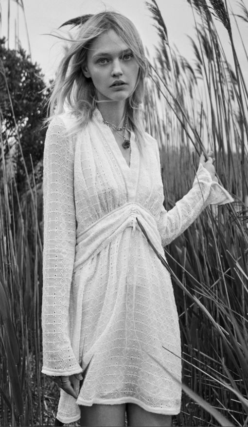 El cuerpo del vestido es 100% viscosa, así como su forro, mientras que los bordados son de algodón. Lo tienes en color blanco desde la talla XS hasta la L, pasando por varias tallas intermedias. Su precio en la tienda online es de 59,95, siendo el más caro de la lista, aunque sigue mereciendo la pena.