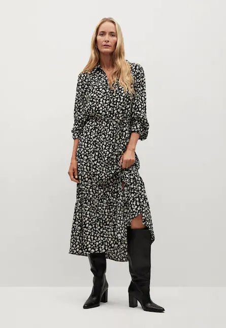Los vestidos estampados no son solo para la primavera y el verano, también es una prenda que funciona de maravilla en el invierno. Es una prenda muy femenina y cómoda, que además sienta de maravilla a cualquier tipo de cuerpo y complexión. En Mango, para estos meses, nos proponen este vestido largo estampando en blanco y negro, de manga larga con puños abotonados y cuello de solapa. Lleva un cordón para ajustarlo a la cintura y cierra con botones en la parte delantera. Tiene un diseño acampanado y termina con un volante ven el bajo. Póntelo con unos botines y una cazadora biker y le darás un punto elegante a la par que abrigado. Es de 100% viscosa y tiene un descuento del 50%, así que te lo puedes llevar por 19,99 €.