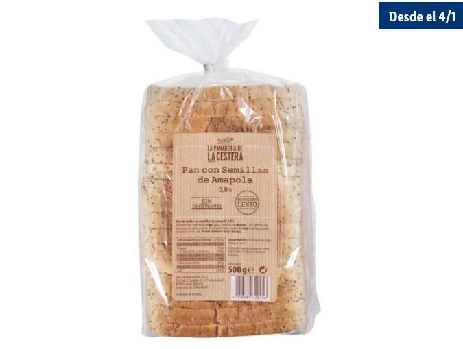Otra de las grandes novedades de Lidl de esta semana y de este nuevo año también está relacionada con la sección de panadería envasada. Se trata de un pan de semillas en rebanadas ideales para hacer tostadas con las que hacer un desayuno más equilibrado pero con todos los nutrientes. La cadena alemana de supermercados se enorgullece del horneado lento de la elaboración que provee La Cestera, la marca blanca de la cadena. En este caso, se trata de un pan de molde con semillas de amapola. Como la mayoría de las semillas, las semillas de amapola son ricas en fibra, grasas vegetales insaturadas y varios micronutrientes, por lo que nos ayudan a cuidar el corazón y el metabolismo.
