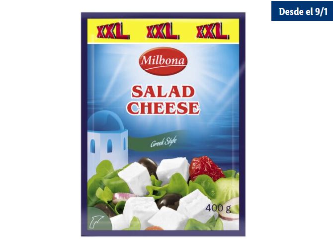 Precisamente para enriquecer ensaladas o para hacer almuerzos y cenas más saludables os proponemos uno de los productos de quesos de Lidl que están de oferta esta semana. Aunque en este caso solo estarán disponible a este precio a partir del 9 de enero. Se trata de la bolsa de 400 gramos de queso feta, un formato ahorro con el que ahorrarás más de un 20% de su coste.