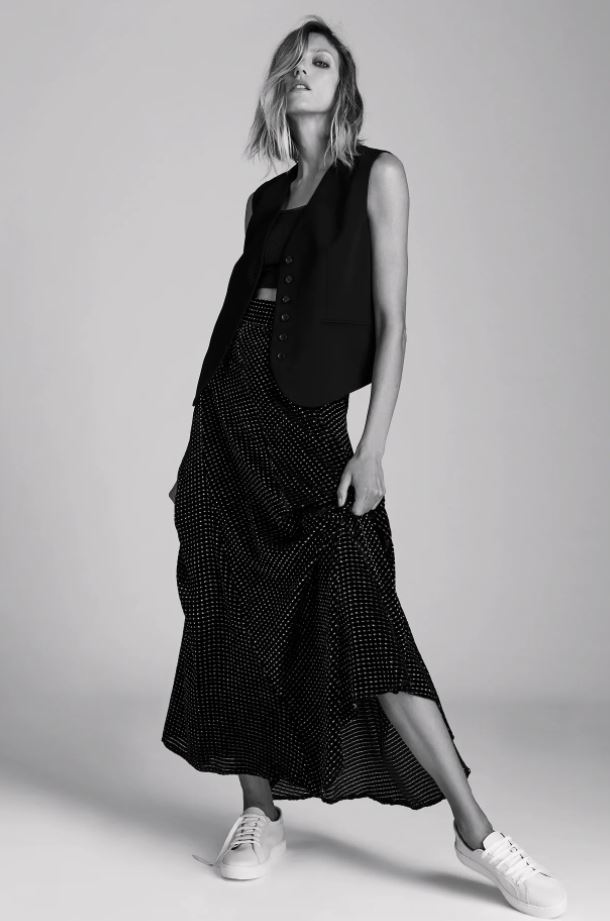 Seguimos con los productos de edición limitada de Zara con esta falda de terciopelo. Su composición es 59% viscosa, 37% poliamida y 4% fibra metalizada de poliéster. Está disponible desde la talla XS hasta la talla XL.