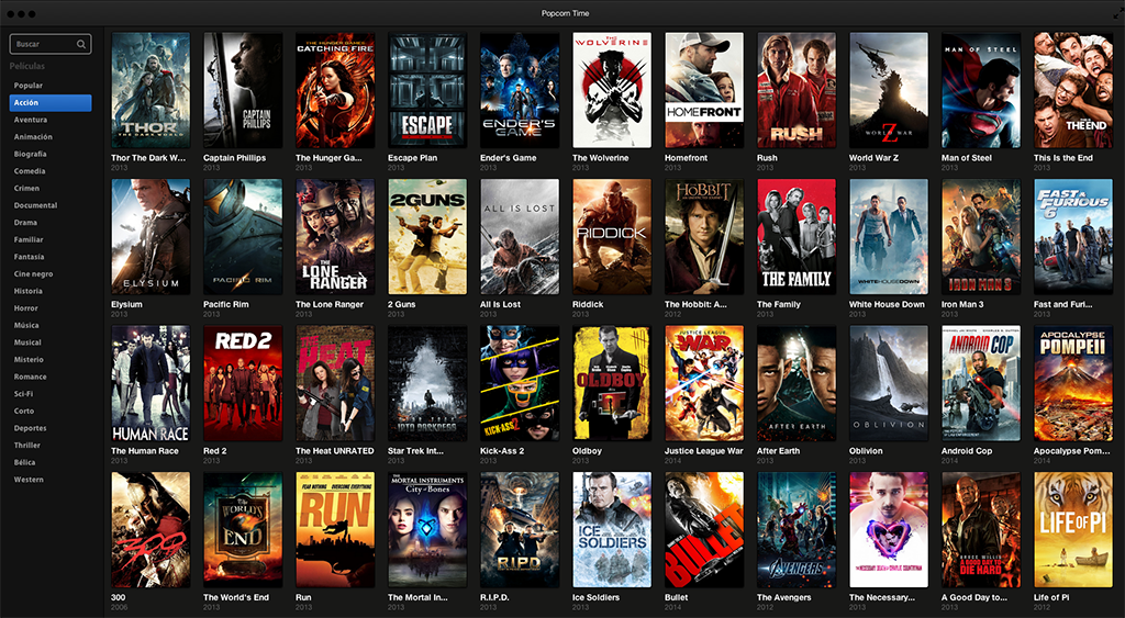Si ya has usado Popcorn Time sabrás que es una de las mejores alternativas que a día de hoy se pueden encontrar para Ololo y Megadede. Aunque es cierto que su interfaz sobre todo recuerda a otro gigante de los contenidos audiovisuales como es Netflix. Se trata de una aplicación que está disponible tanto para Mac como par Windows o Android.