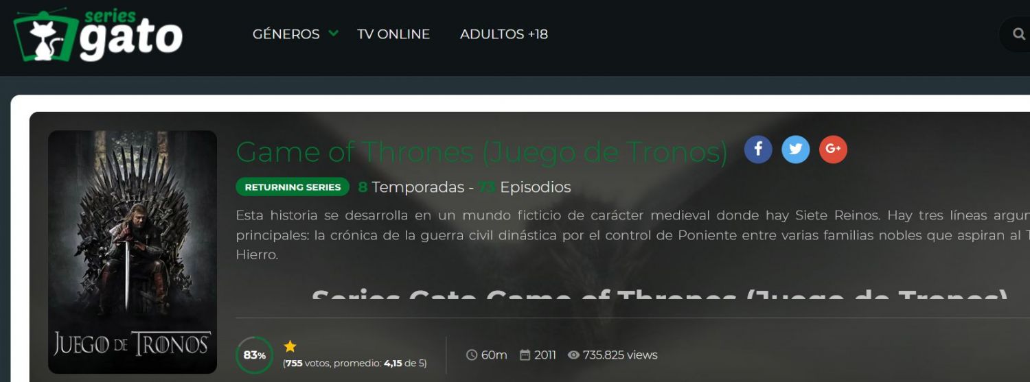 Seriesgato es una de las alternativas a Megadede y a Ololo que más han triunfado durante el año que acaba de terminar. Y se prevé que su éxito siga durante todo el año 2021. Gran parte de este éxito se debe a que para acceder a todos los contenidos que se ofrecen desde este portal no es necesario ningún tipo de registro por parte del usuario. Lo que agiliza bastante la visualización de las series. Además cuenta una sección de recomendaciones que se generan de manera automática en función de las series que ya has visto. Por lo que no sin opciones no te vas a quedar.