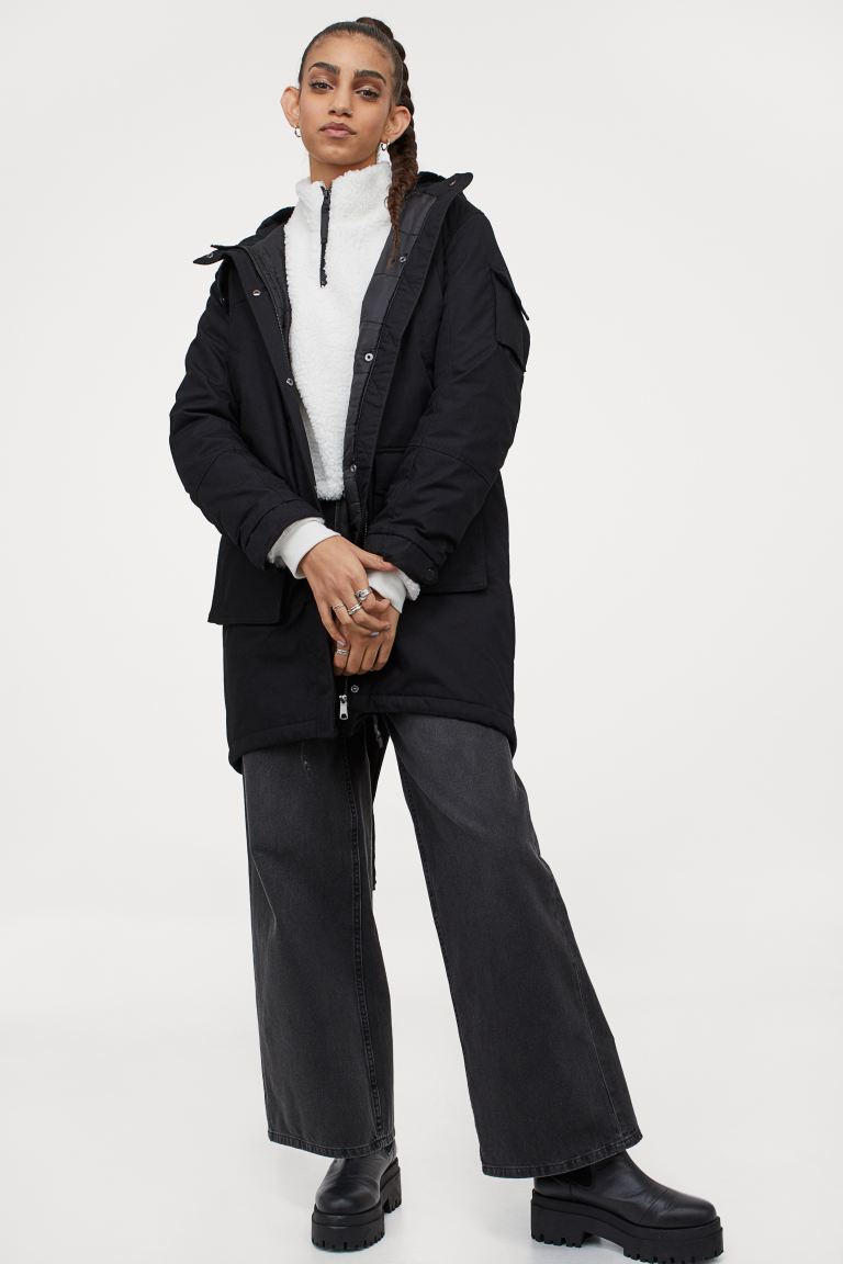 Terminamos esta lista de chaquetas acolchadas de H&M con una última parka, la cual llega ligeramente acolchada. Este es un modelo corto con una capucha forrada de peluche.