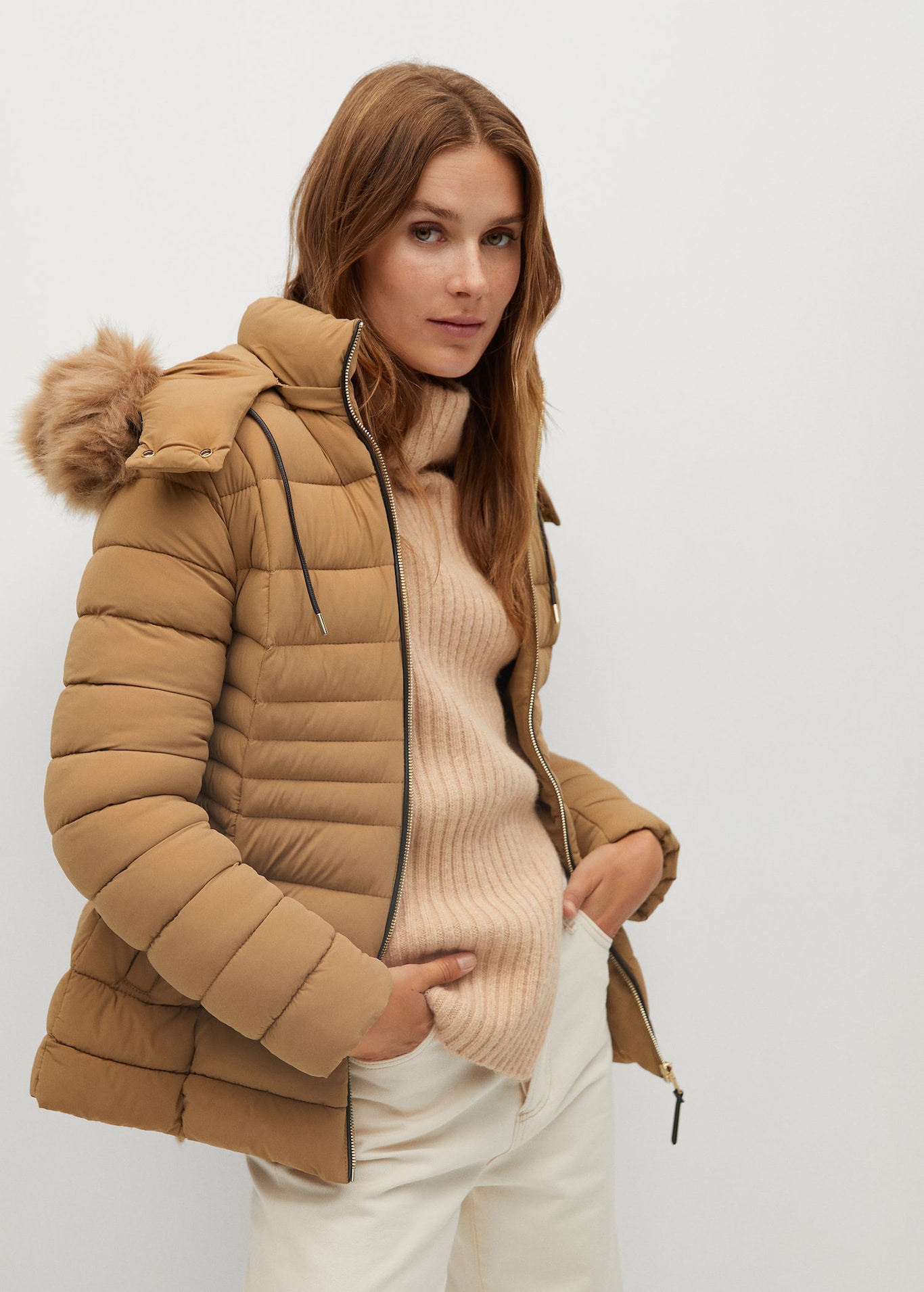 Un anorak de diseño medio con capucha adornada con pelo sintético. Puedes desmontar fácilmente el pelo de la capucha o directamente quitar la capucha entera, así será como tener tres abrigos diferentes en uno solo. Disponible en negro y en este original marrón medio que te mostramos en la foto.