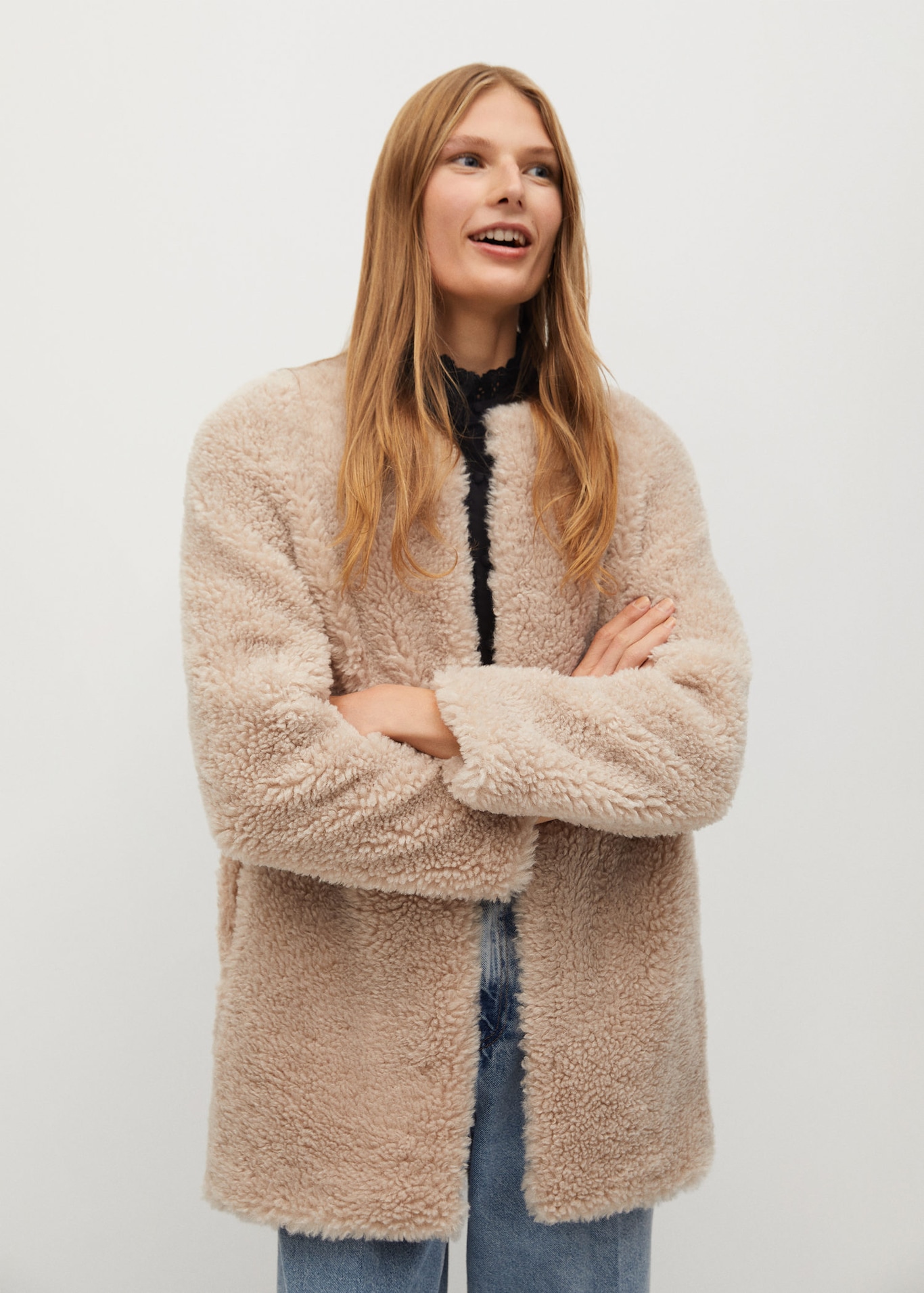 Las prendas de borreguito están causando furor esta temporada, y mucho más si además para poder lucirlas ningún animal ha tenido que sufrir. Y eso es justo lo que ocurre con esta chaqueta de Mango, que está elaborada con un tejido sintético que, sin embargo, consigue un efecto borreguito muy logrado.