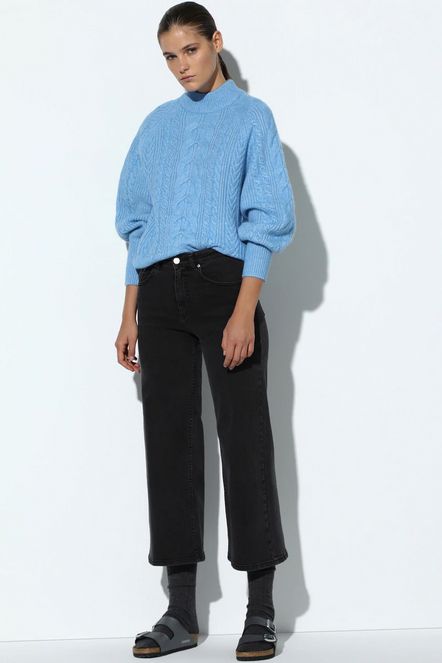 El punto de ochos es todo un clásico, y cuando nuestras abuelas nos calcetaban chaqutas infantiles de ochos, no sabían que en el invierno 2020-2021 iba a ser lo más en los jerséis de punto. Nos encantan porque además de tener ese toque de nostalgia, son prendas que abrigan mucho y son muy gustosas para el invierno. Este modelo de la marca Fórmula Joven, de El Corte Inglés, además del diseño clásico que hemos comentado, tiene el detalle de unas mangas abullonadas, que hacen que el jersey sea mucho más especial. El cuello es de estilo perkins, ideal para el frío. Está disponible color azul y en beige, y está fabricado con un 65% de acrílico y 35% poliéster. El precio durante estas rebajas es de 19,99€.