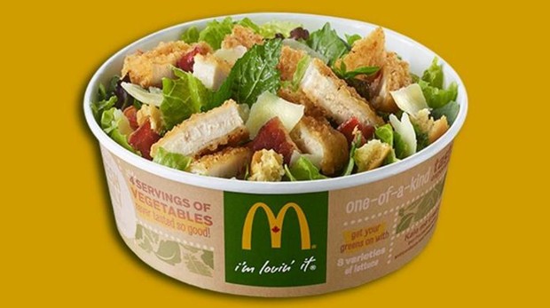 La ensalada de queso de cabra de McDonalds tiene menos calorías que la ensalada césar, con 222 calorías por ración, una cantidad mucho más razonable. Eso sí, el porcentaje de grasas es más alto, con 8% de grasa, 2% de carbohidratos y 5% de proteínas.