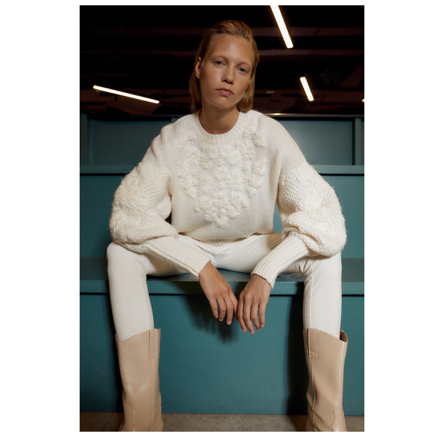 Para empezar, el cuello del jersey es redondo, pero el acabado del mismo no se ve como los demás que puedes encontrar habitualmente en las tiendas. Por supuesto, la manga abullonada con puños en rib es un gran punto a su favor, ya que llevan mucho tiempo siendo tendencia.